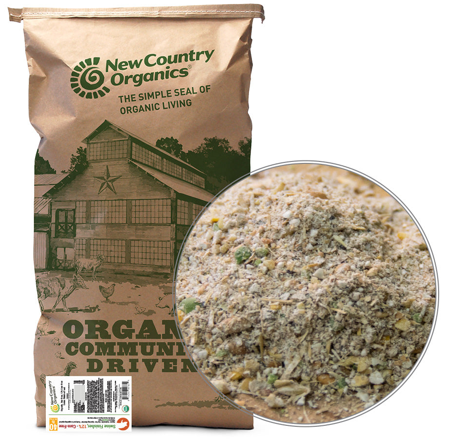 New Country Organics Certified Organic 12% Swine Feed contains the perfect mixture of quality organic grains, alfalfa, and kelp to maintain healthy growth and happy hogs.